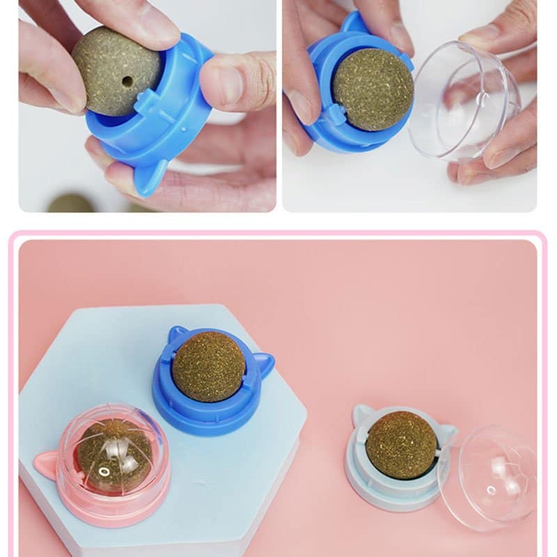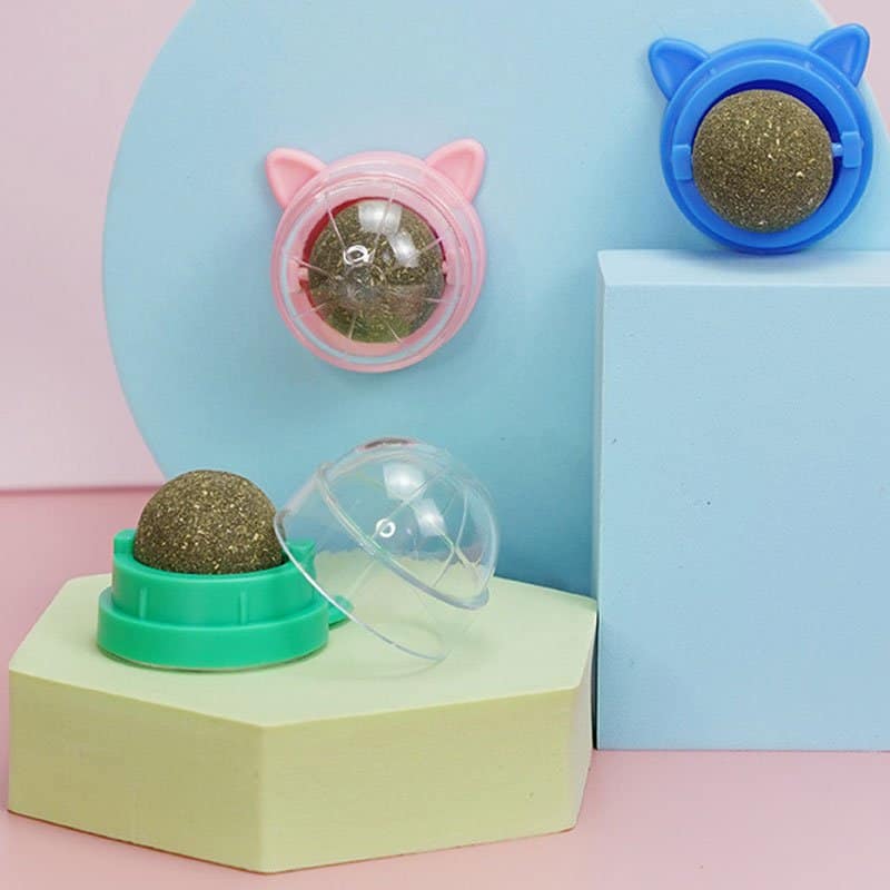 El Juguete para gatos se puede conectar fácilmente a la pared u otra superficie con fuerte adherencia y no se desprenderá cuando su gatito se lame y juegue. La bola gira 360 ° cuando se lamina